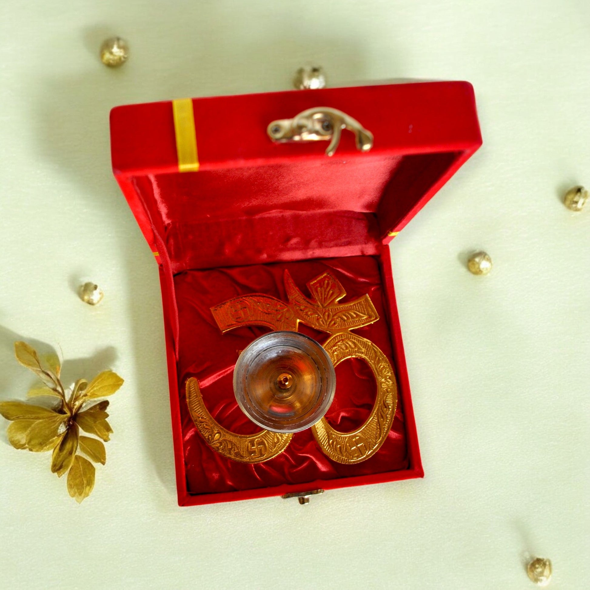 Brass Gold Silver Plated Om Diya With Velvet Box