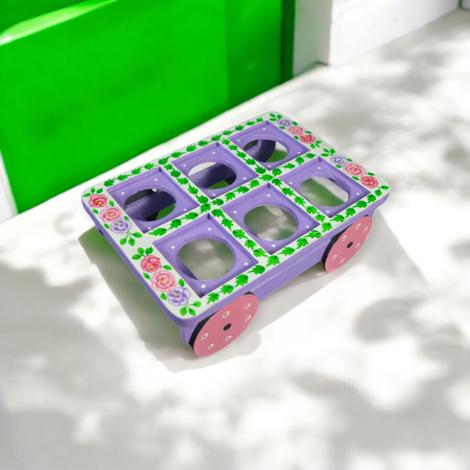 This charming Hand Painted Aluminum Flower Tea Kettle With Wooden Trolley Glass Set is a delightful combination of functionality and artistic expression. The set features a hand-painted aluminum tea kettle adorned with a delicate floral design, paired with a whimsical wooden trolley that holds four matching hand-painted glasses. This unique set is perfect for enjoying a cup of tea in style and adds a touch of artistic flair to your kitchen or dining area.