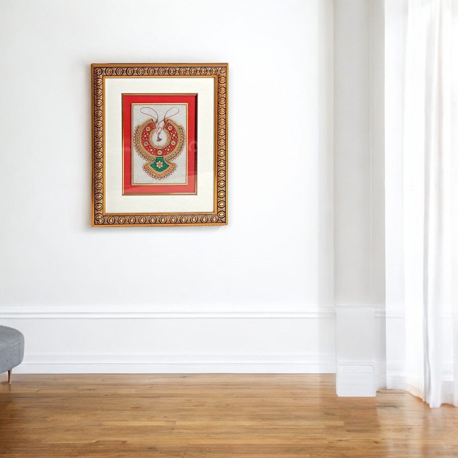 This exquisite Hand Painted Necklace Marble Wall Hanging is a true work of art. The painting depicts a stunning necklace with intricate details, meticulously hand-painted on a marble surface. The vibrant colors and delicate brushwork bring the necklace to life, creating a captivating piece that adds a touch of elegance and sophistication to any space.