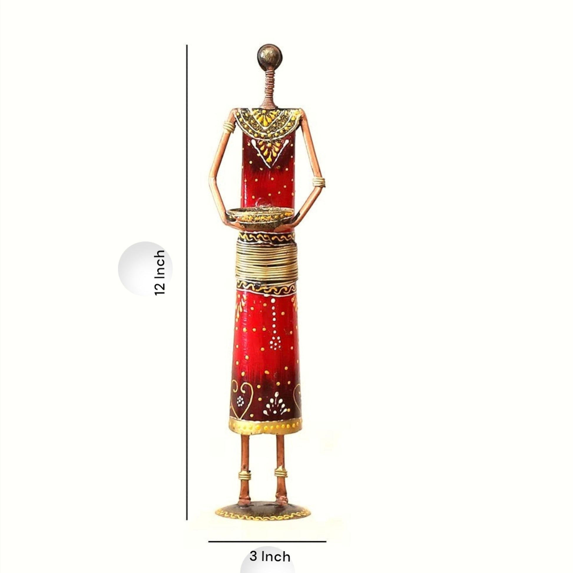 This enchanting set of 4 red iron candle holders features tribal doll figurines. Each doll has a bowl-shaped head that acts as a holder for a tea light candle .The red color and intricate details add a touch of world culture to your home décor.