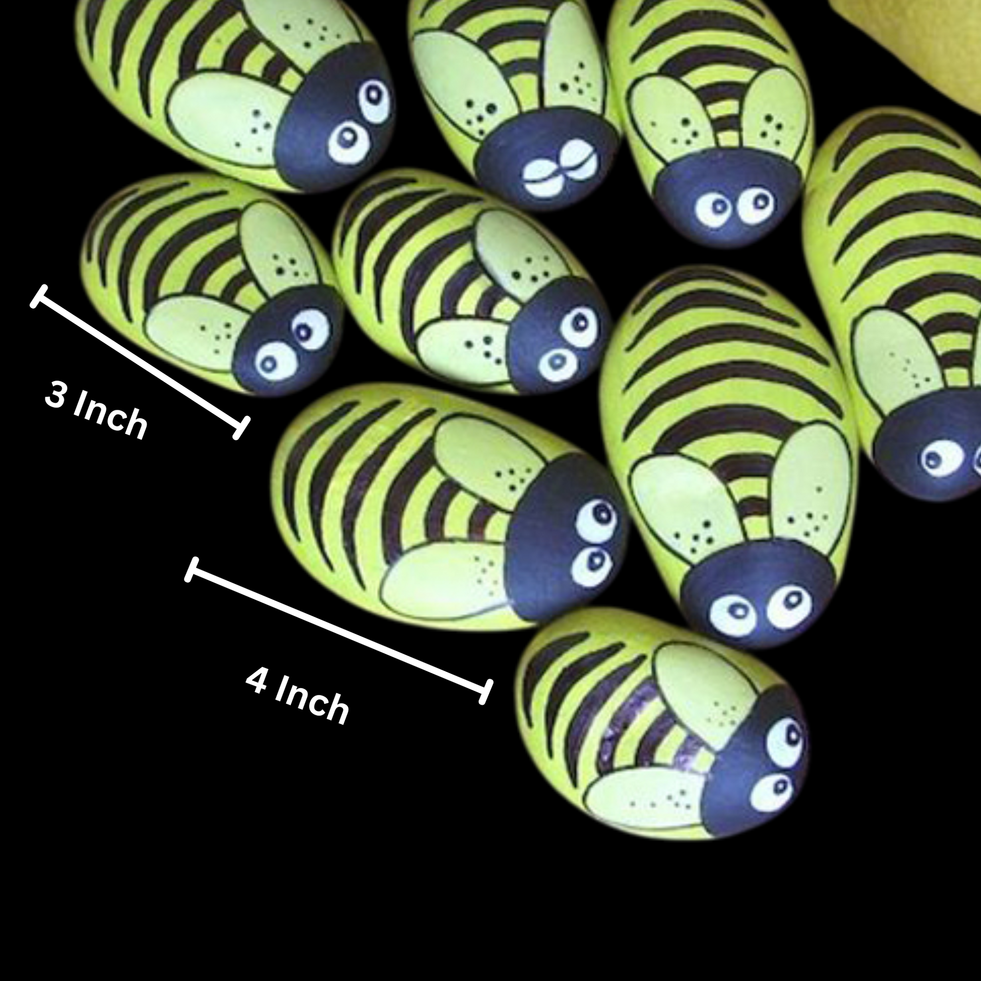 This delightful Painting Stones features charming bumblebees hand-painted on smooth, natural stones. Each bee is unique in size and design, adding a touch of whimsy and color to your home décor or garden.