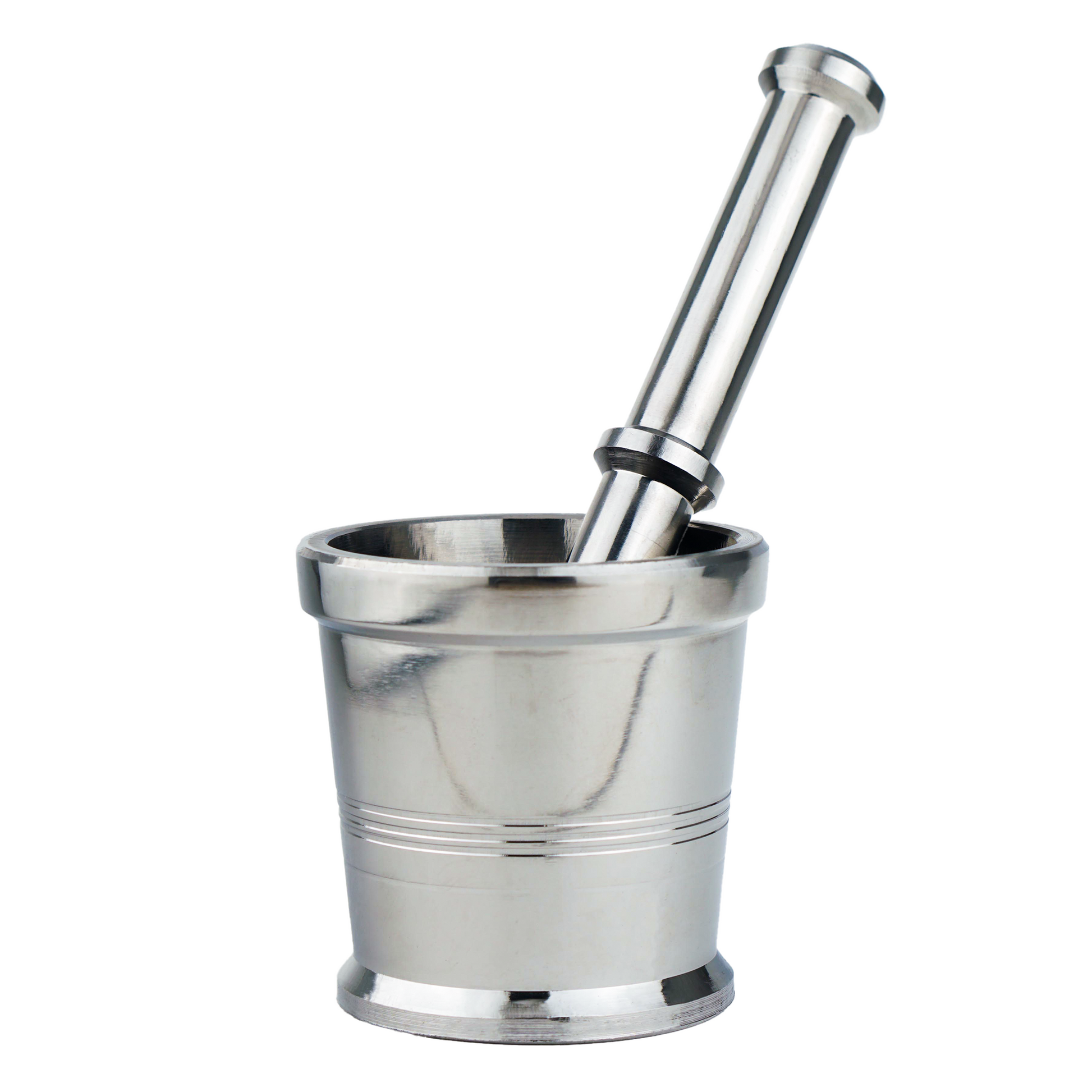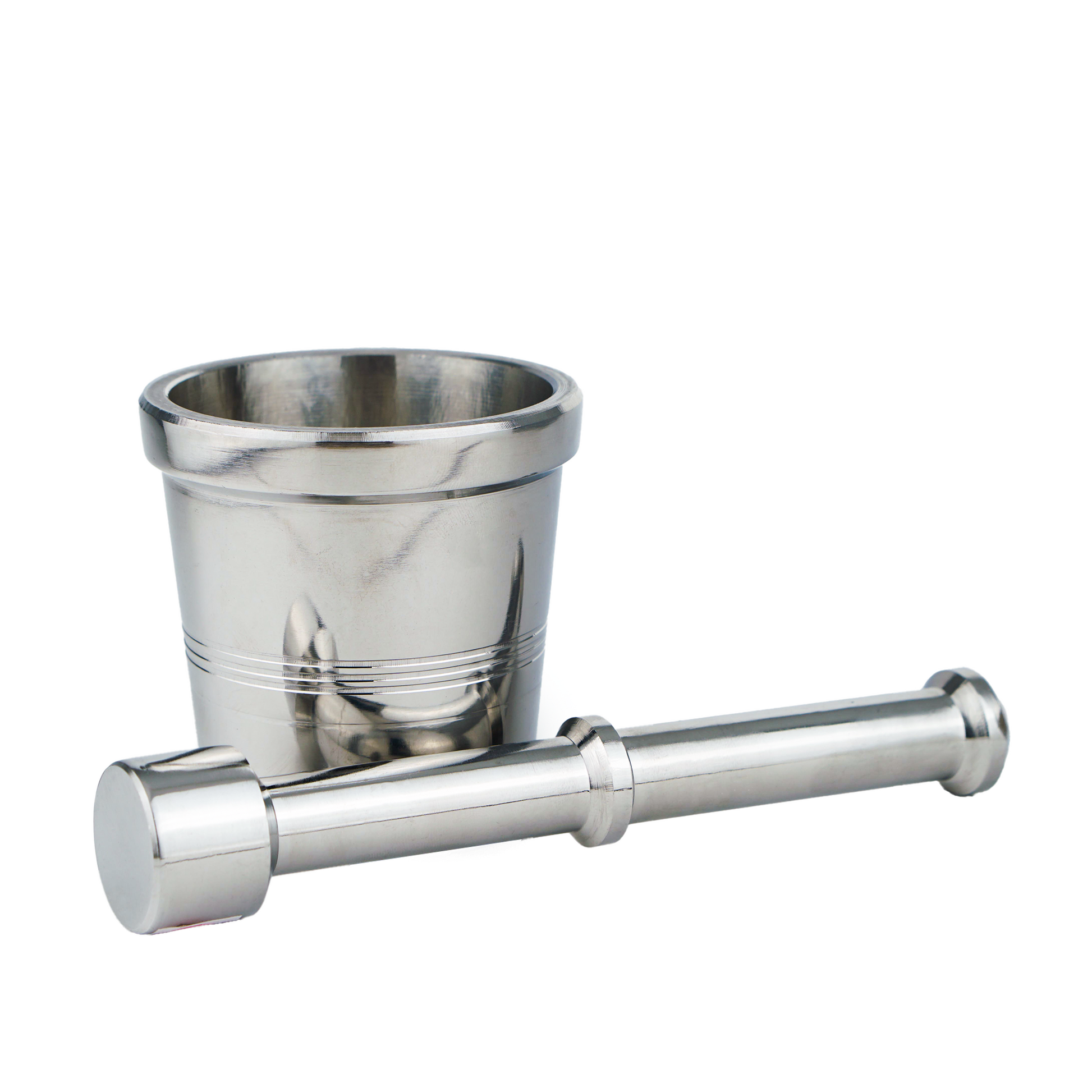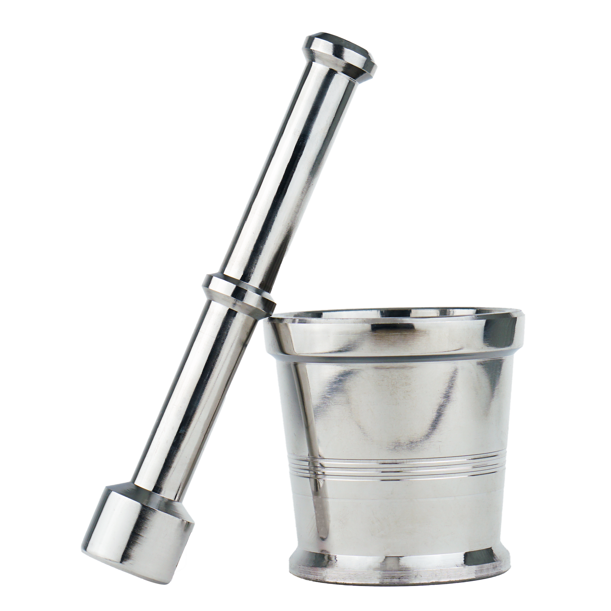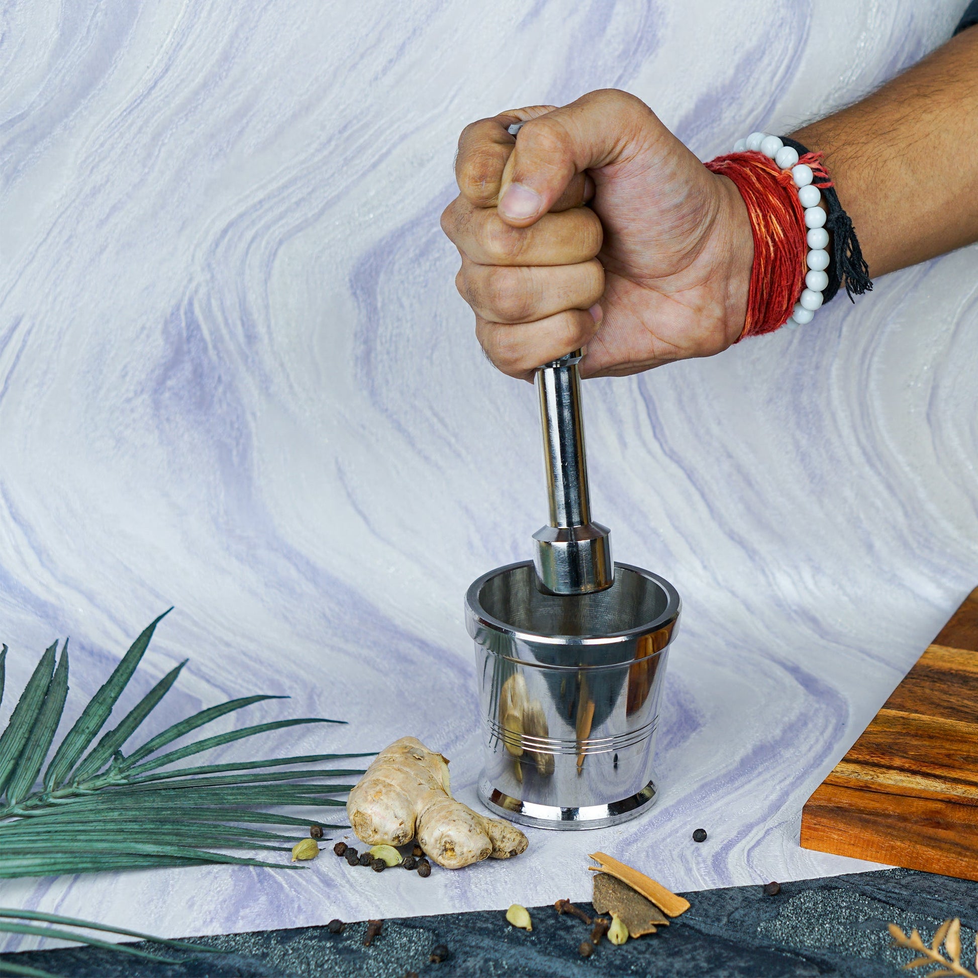 This Silver Stainless Steel Mortar And Pestle Set is a versatile and durable kitchen tool, perfect for grinding spices, herbs, and other ingredients. The set includes a sturdy mortar and a smooth, easy-to-grip pestle, both made from high-quality stainless steel for long-lasting use. The sleek silver finish adds a touch of elegance to your kitchen.