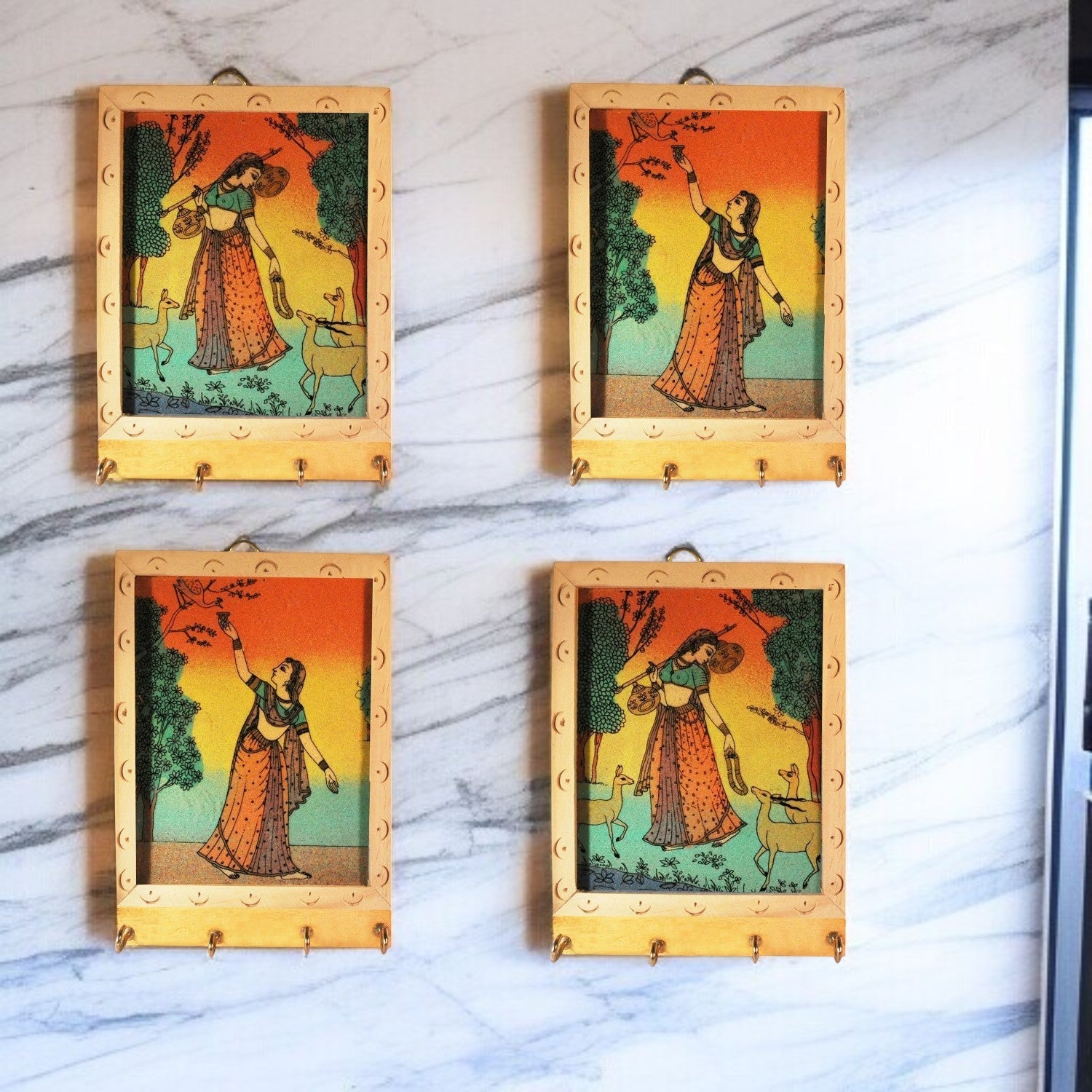 This charming wooden key hanger is a stylish and functional addition to any entryway. The handcrafted design features 4 metal hooks for hanging keys, coats, or dog leashes. The multicolor finish adds a touch of whimsy to your decor, while the sturdy wooden construction ensures years of reliable use.
