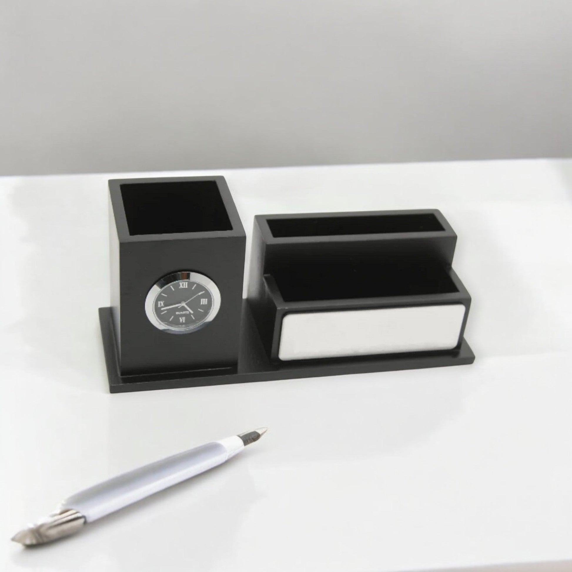 This set of 50 Wooden Desk Pen Stands is a functional and stylish addition to any desk or workspace. Each stand is crafted from high-quality wood, offering a natural and elegant look. The stand features multiple compartments to organize pens, pencils, scissors, and other office supplies, along with a built-in clock to keep you on schedule.