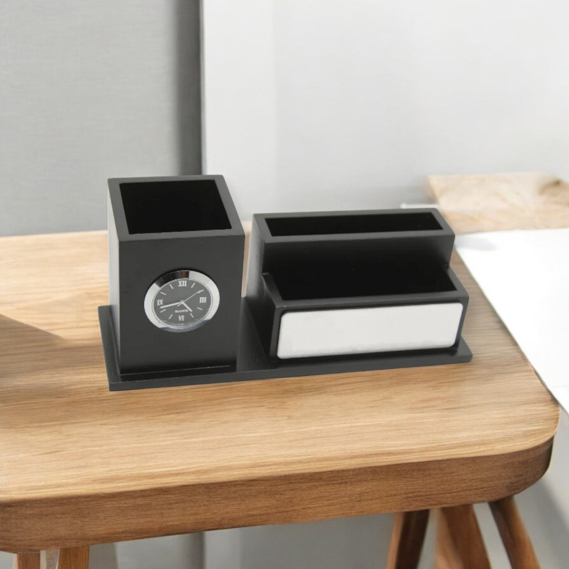 - Multifunctional: Features multiple compartments for organizing various office supplies and a built-in clock.