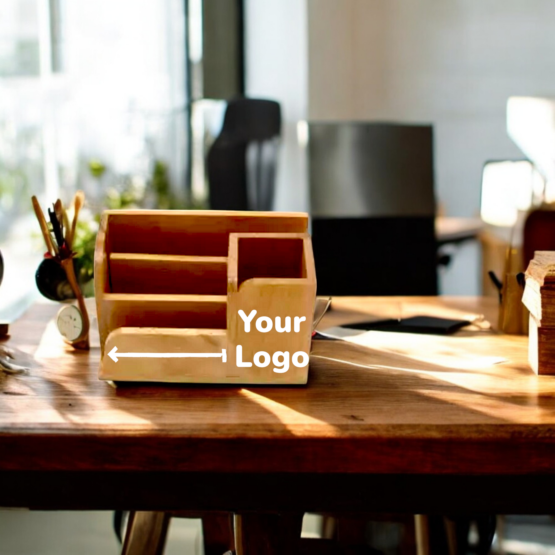 This set contains 50 wooden desk organizers, each designed to efficiently manage your writing instruments and correspondence. The integrated design features a dedicated section for pens, pencils, and other stationery, along with compartments for organizing letters, documents, notepads, and small office supplies. Crafted from durable wood, these organizers offer a blend of functionality and natural elegance, fitting seamlessly into any workspace.
