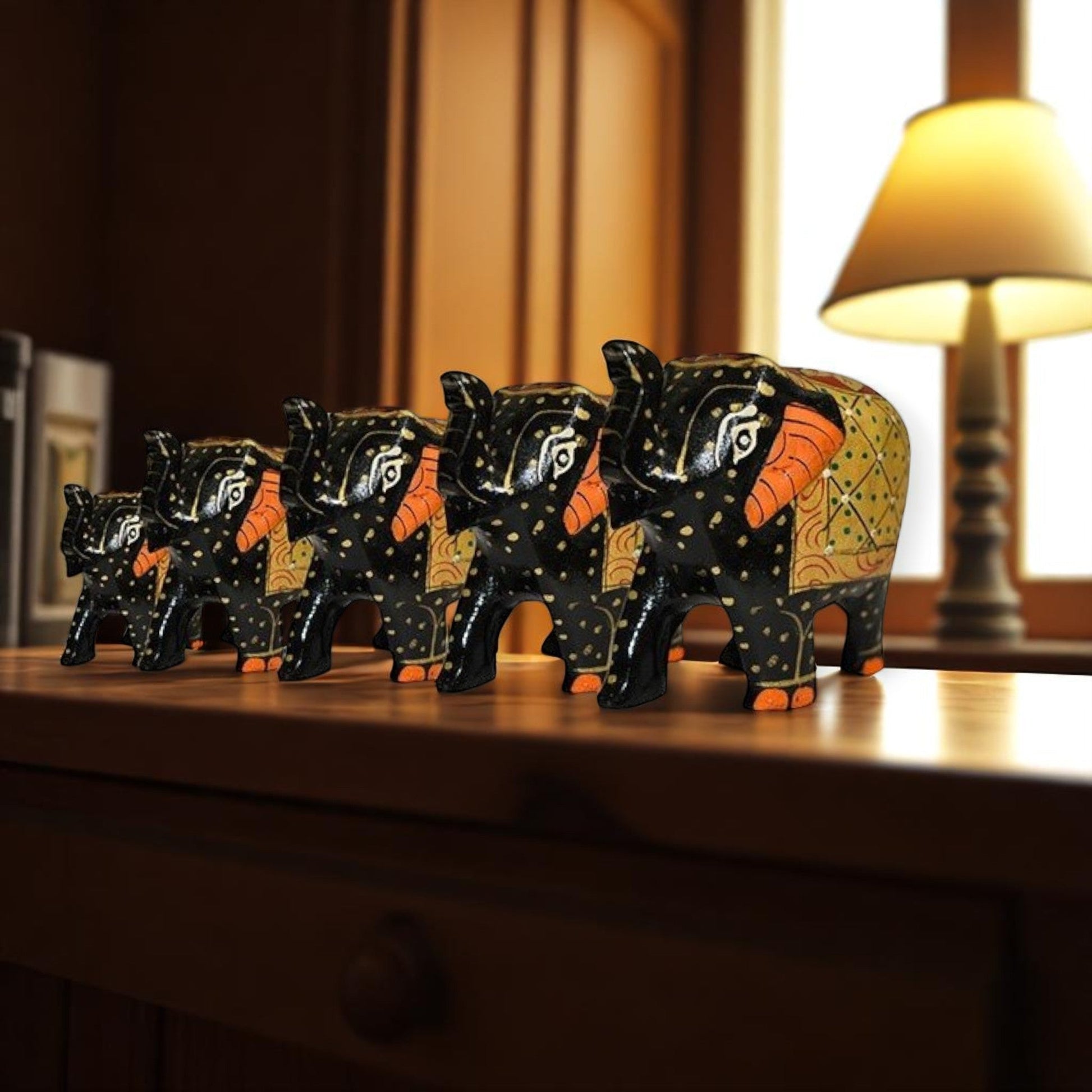 - Intricate hand-painted designs: Each elephant showcases unique, vibrant motifs and patterns, reminiscent of antique Indian art.