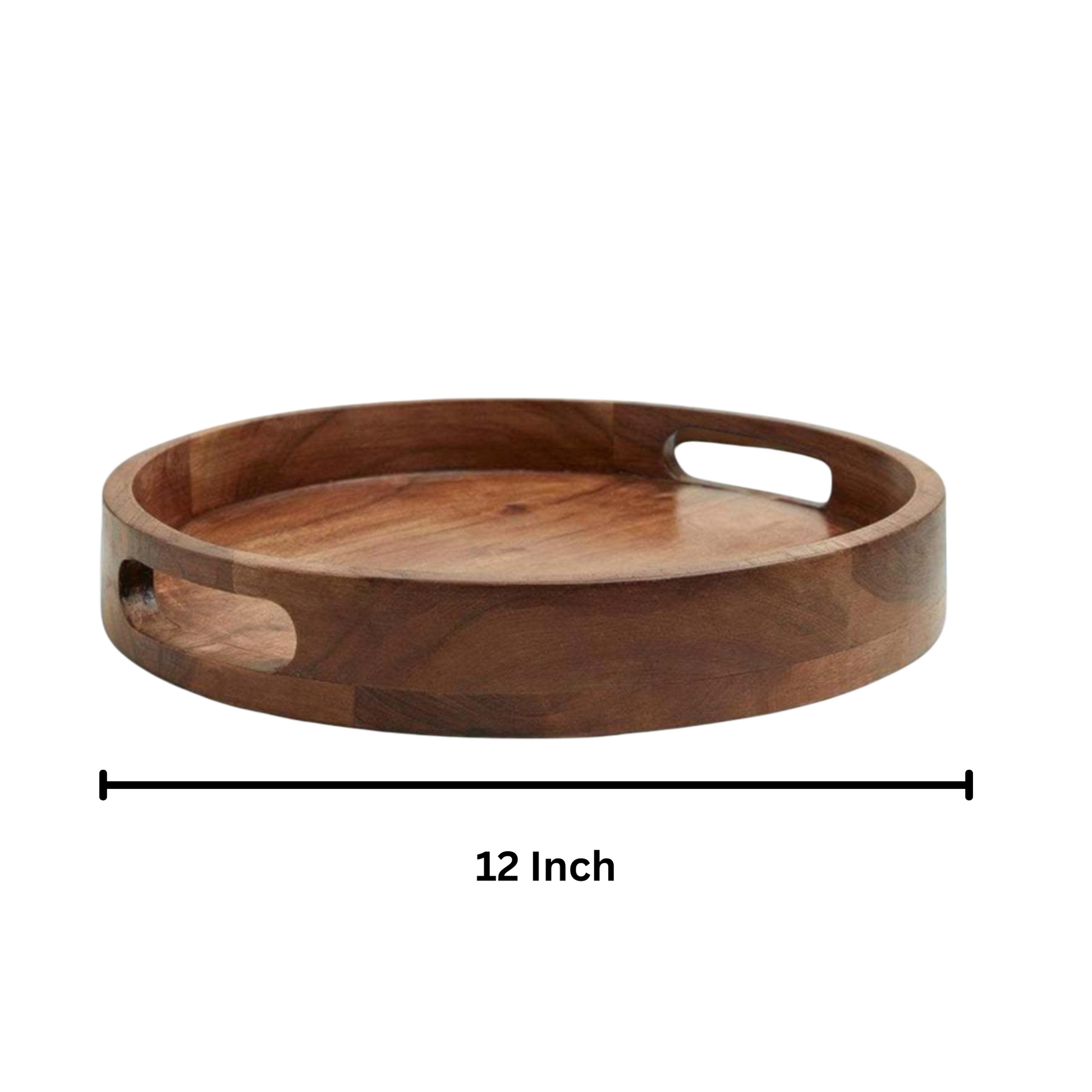 Bring warmth and rustic charm to your home with this handcrafted round wooden serving tray. Made from natural wood this tray is not only beautiful but also durable and versatile. The smooth polished surface is perfect for serving drinks appetizers snacks or even breakfast in bed. Use it as a decorative centerpiece to add a touch of nature-inspired style to your coffee table or ottoman.