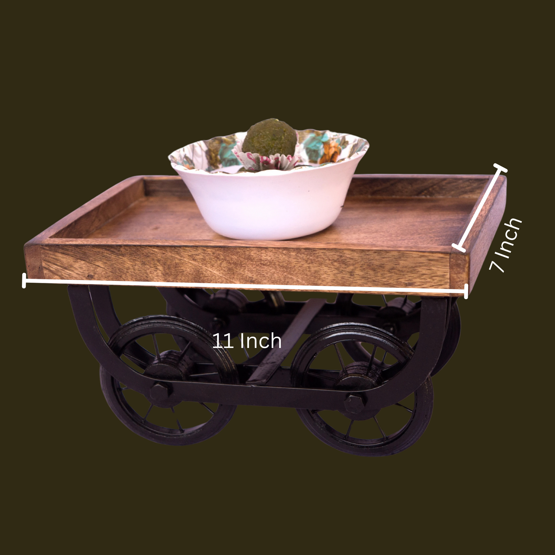 Add a touch of rustic charm and Indian flair to your dining experience with this beautiful Wooden Natural Serving Tray Thela Trolley. Handcrafted from sustainable mango wood, this unique serving tray features a charming mini cart design with four wheels, reminiscent of traditional Indian street vendors' carts (thelas). Perfect for serving appetizers, snacks, drinks, or even desserts, this versatile tray will add a touch of whimsy and cultural touch to your table setting.