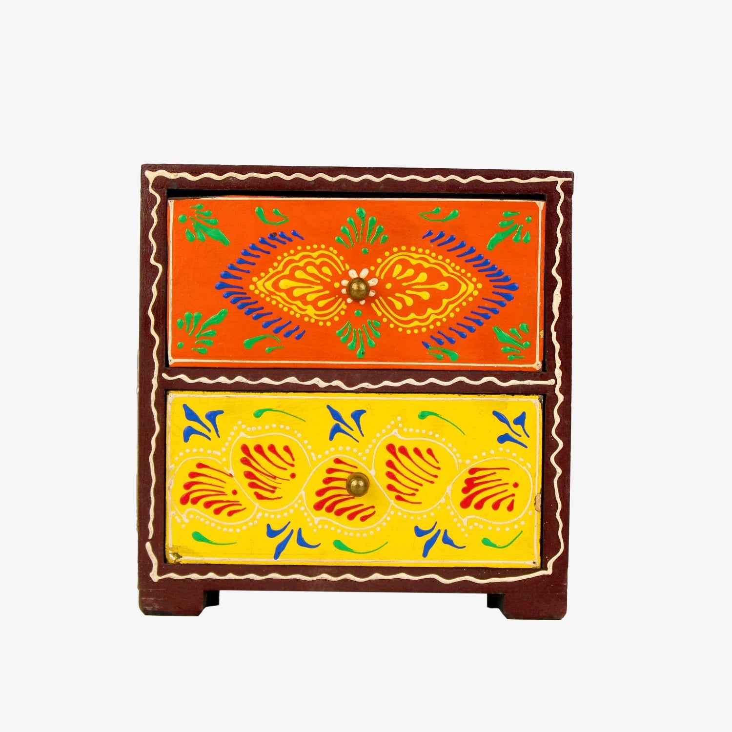 This decorative wooden box features two drawers and is a versatile storage solution for your home. The box can be used to store a variety of household items, such as jewelry, keepsakes, trinkets, crafting supplies, or office supplies. The two drawers help to keep your belongings organized and out of sight, while the floral design adds a touch of charm to your home decor.